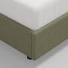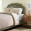Complete the look of your bedroom with this Notched Bed from Threshold™ designed with Studio McGee. Made with a pine frame, this bed features an upholstered headboard with notched detailing to add an elegant vibe to your space. This bed is 4 inches high from floor to frame, and the simple design blends effortlessly with any decor style and color palette. Add a box spring, a comfortable mattress and sheets of your choice to complete the look.