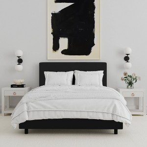Bring modern style to your bedroom with this Olivia Bed in Velvet from Threshold™. This panel bed comes with rectangular lightly padded headboard for simple, modern style. Made from pinewood, it's upholstered in solid-colored velvet fabric for easy coordination with any decor. Simply add your own mattress, cushioned pillows and your choice of sheets to create a comfy space you will love to fall asleep in.