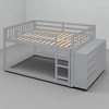 Full Over Full Bunk Bed with Storage Drawers and Shelves, Solid Wood Frame, No Box Spring Needed, Gray, Space-Saving Design