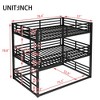 - ¡¾Maximize Space with Triple Bunk Design¡¿This metal triple bunk bed is a smart solution for families with limited space. It provides three comfortable sleeping spots stacked vertically, freeing up valuable floor space — perfect for shared kids' rooms, guest spaces, or vacation homes.