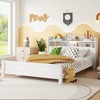 Full Pine Wood Bed with Bookcase Headboard ,LED Motion Sensor Light, Bed Guardrails,White