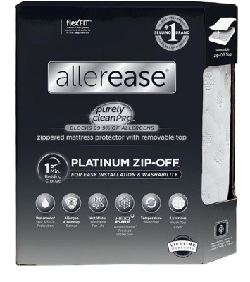 From the #1 selling allergy bedding brand, the AllerEase Platinum Zip-Off Mattress Protector combines premium comfort, protection, and convenience to create the most comprehensive allergy solution on the market. Platinum completely covers your mattress to block bedbugs and 99.9% of allergens—like dust mites, pollen, pet dander, and other household allergens that can trigger an allergic response. The luxurious, plush top fabric features temperature-balancing technology that continuously adjusts to your body temperature, keeping you comfortable throughout the night.