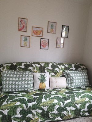 Ever since moving to South Florida, if it has a banana leaf on it, I've ended up buying it! I'm laying in bed as I type this, wrapped in this tropical quilt and it's so soft, supple and brings a broad smile to my face. My hubby put it on the bed after I washed it last night (cold and then low dry settings are recommended).