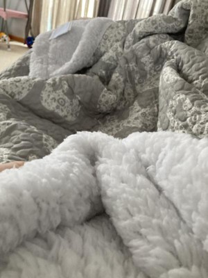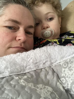 [This review was collected as part of a promotion.] This very cute blanket is the best! Super cute gray & white little elephants with the super soft cozy fell of Sherpa on the back side. Our three kids have been sneaking it so the others don't know they have it. Very warm and snugly!