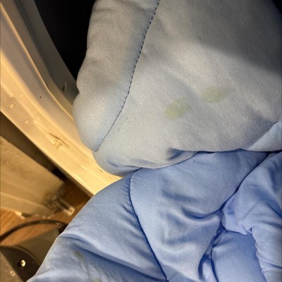 This comforter burnt in the first wash and then I returned it for a new one. Purchased the same comforter thinking the first was a dud. Now it broke my washing machine fully and flooded my bathroom. This is not designed well for machine wash bedding!