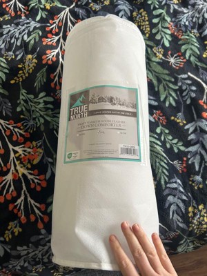 [This review was collected as part of a promotion.] I’ve been wanting to get a down comforter for my daughter because she gets cold at night. I was super excited to receive this True North comforter. The size I got is a Full/Queen. The fabric is made of 100% polyester, but I guess that won’t matter because I’ll be buying a cotton cover for it. There was a smell upon opening the packaging, so I aired it out outside. It’s lightweight but warm which is good for her because she doesn’t like heavy comforters. Overall, it’s very nice!!