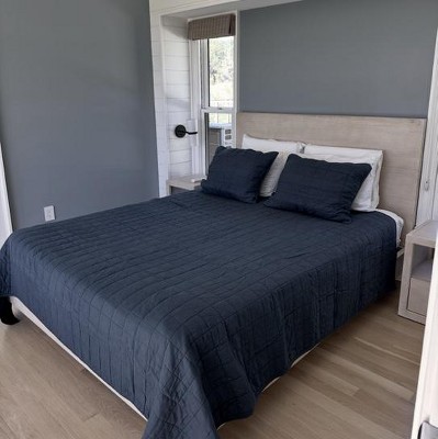 Full/Queen Heavyweight Linen Blend Quilt Dark Mineral Blue - Casaluna™