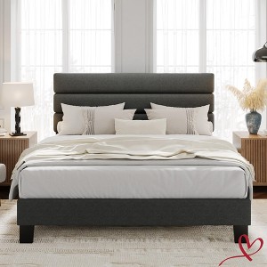 Tailor bedtime comfort with this upholstered platform bed: the padded linen headboard adjusts between 43.7" and 45.7" to pair perfectly with your mattress height. A sturdy steel-and-wood frame with wide slats supports memory-foam or innerspring mattresses¡ªno box spring or nightly re-centering needed. An EVA buffer strip hushes metal-to-metal contact for squeak-free sleep, while protective feet help keep floors scratch-free. All pieces ship in one carton; follow the illustrated guide to go from unboxing to lights-out in under an hour.