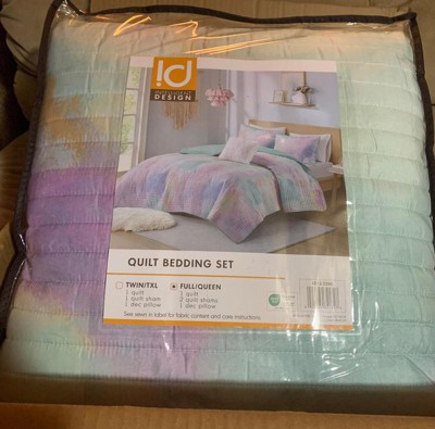 [This review was collected as part of a promotion.] I absolutely love the soft tie dye colors in this quilt set. When I seen the colors through the clear plastic case, I hurried up and had to put it on my bed. The colors to me are like dreamy rainbow clouds. The only thing I wish is the furry pillow, was a different color, and softer. It feels coarse, to me. The Quilt set is washable, and the furry pillow is spot cleaning only. The other side of the quilt is one color, soft turquoise, which is also very pretty. I love this Intelligent Design Cassiopeia Watercolor Tie Dye Quilt Set. Very Pretty!