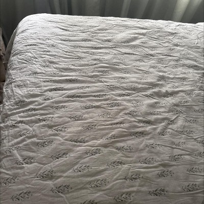 Add graceful style to your sleep space with this Lofty Cotton Slub Wood Block Floral Quilt from Threshold™ designed with Studio McGee. This white slub quilt printed with a slate gray wood block floral pattern brings charming appeal to your bedding. It features a lofty quilted construction to lend a soft and cozy touch to the top of your bed. This midweight cotton quilt offers comfortable year-round use, and is machine washable for easy care. Pair with matching shams and a sheet to coordinate your bedding ensemble.