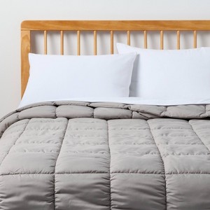 Add a pristine look to your bedding with this Twin/Twin Extra Long Box-Stitch Puffer Comforter from Room Essentials™. Showcasing a puffer construction in box quilting, this lightweight comforter is made of 100% microfiber with backing and 100% recycled polyester filling for cozy comfort. Plus, it’s designed with a machine-washable construction for added convenience. Pair it with crisp sheets and patterned or plain pillows, and layer with a duvet for extra warmth on cooler nights.