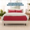 I was looking for something just red and bright color. This is it! Beautiful quilted cover. It’s warm enough to sleep with flannel sheets and pajamas without feeling sweaty. The oversized is excellent so you won’t have your mattress showing. Great quality and well made. Softness and not stiffness fabric.