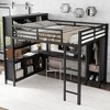 Full/Queen Size Metal Loft Bed with Wardrobe and L-Shaped Desk, Heavy-Duty Loft Bed with Storage Cubes and Shelves, White/Black - ModernLuxe