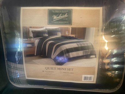 [This review was collected as part of a promotion.] Woolrich Spruce Hill Oversized Cotton Quilt Mini Set looks very nice on my bed. The quilt and shams are sturdy and make my bed look very put together. The colors are warm and make my room feel and look cozy. The green, cream, blue, and plaid design gives a sort of retro vibe. Even the storage bag that it came in has charms as the zipper pull instead of just the standard zipper. This lightweight set is good for early Fall or late Spring weather. Warm, but not too hot and heavy. Comes with two standard shams and one quilt. Was easy to put on bed and pillows.