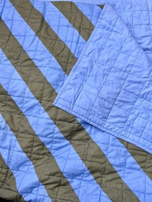 What a nice blue reversible quilt! One side is a solid soft blue, the other side is soft blue with green stripes. This is a lighter weight quilt perfect for warmer nights or layered for colder nights.