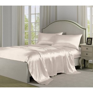 Silky satin sheets by Belles & Whistles will instantly add luxurious comfort to your bedroom. Each charmeuse sheet set features premium ultra-smooth satin fabric specially woven to be as durable as it is cozy. Deep pockets and elastic on the fitted sheet provide a strong, functional hold for mattresses up to 17". Set includes two pillowcases, one fitted sheet and one flat sheet. Available in twin, full, queen and king for every size bed. Variety of rich color options include black, ivory, red, white, pink and silver to accommodate any style bedroom, guest room, dorm room or master suite. Conveniently machine washable. 100% Polyester.