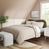 Give your bedroom a makeover with this Scalloped Wave Bed from Threshold™. Crafted with a wooden frame, this platform bed features a wavy, scalloped headboard for an elegant look. This bed is 6 inches high from floor to frame and features solid-color upholstery to match your existing decor. Pair it with a quality mattress and your choice of bedding for a restful night's sleep.