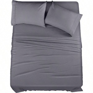Full Sheet Set - 4 Piece Bed Sheets for Full Size, Soft Microfiber, Includes Fitted Sheet, Flat Sheet, 2 Pillowcases Grey