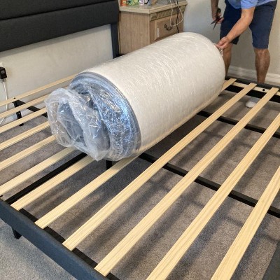 A: A spring box is not required. The base of this product serves as a spring box and you can simply place your mattress on the bed frame directly.