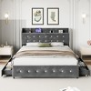King Size Bed Frame, Upholstered Platform Bed Frame with 4 Storage Drawers, Bed Frame with Diamond Tufted Headboard, No Box Spring Needed