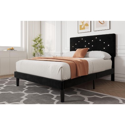Full Size Bed Frame, Velvet Upholstered Bed Frame with Vertical Channel Tufted & Sturdy Wood Slats, Platform Bed Frame Easy Assembly,Noise-Free,Black