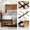This sturdy bed frame combines practical storage with industrial-chic design, featuring four smooth-sliding drawers (two on each side) for convenient under-bed organization of off-season clothing, bedding, or accessories.