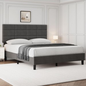 Linen Upholstered Platform Bed Frame with Adjustable Headboard – Grey, No Box Spring NeededProduct DescriptionBring comfort, style, and reliable support to your bedroom with the TruAIR Linen Upholstered Platform Bed Frame. Featuring a height-adjustable memory foam headboard, this bed lets you customize your sleeping experience while providing plush, soft-touch comfort. The elegant grey linen upholstery complements any bedroom décor, adding a cozy, modern look to your space.Built for strength and stability, the bed frame includes a reinforced wooden slat system and 12 sturdy support legs, with center supports to prevent shaking or squeaking. Supporting up to 700 lbs, it provides a quiet, secure foundation for restful nights.With no box spring required and easy, tool-free assembly, this bed frame combines practicality with luxury. Perfect for memory foam, hybrid, or spring mattresses, it offers a firm, well-supported foundation that enhances mattress durability and comfort.Key Features Adjustable Memory Foam Headboard