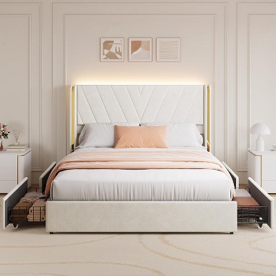 - 【Adjustable RGB LED Lights】The LED bed frame queen size is equipped with LED lights at the bottom of the bed, which can be controlled by the included remote control and mobile phone APP