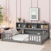 Full Size Floor Bed with Side Bookcase, Shelves and Guardrails
