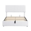 This beautiful upholstered platform bed features an upholstered headboard to give your bedroom a modern and chic look and is filled with thick foam for extra comfort. Sturdy wood frame construction and wood slat system add extra stability and safety. A hydraulic storage system under the mattress can store your bedroom items in a smaller space without compromising your desired bed size.