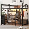 Full Size Loft Bed with Drawers, Desk and Storage Shelves