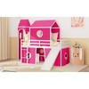 - Sturdy & Safe Construction with Playful Design Crafted from solid pine wood and high-quality MDF, this loft bed offers durable stability with added safety features. The slats support each mattress effectively, while the castle-inspired design sparks imagination and encourages kids to love bedtime.