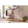 - Space-saving solution. The loft bed includes a desk and two shelves integrated to the metal frame and has 59" of under-bed clearance.