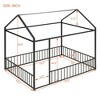 Full-Size Metal Bed Frame Designed as a House with Surrounding Fence