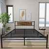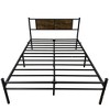 Full Size Metal Bed Frame with Wood Panel Headboard