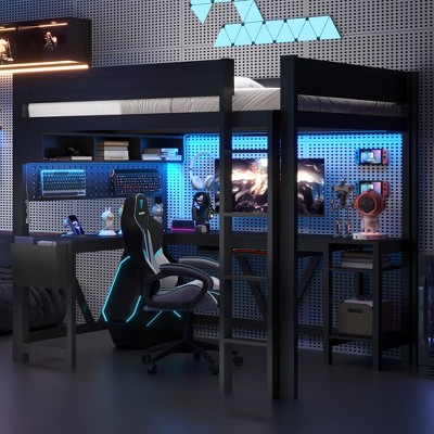 - Superior Quality: The loft bed is constructed with a heavy-duty, sturdy metal frame that enhances overall stability and ensures long-lasting durability. It can withstand daily use (including climbing the ladder and placing items on shelves) without wobbling or squeaking, providing a reliable sleeping and living space. The bed also includes pre-installed metal slats for the mattress, eliminating the need to purchase extra box springs or foundations—saving you time, money, and hassle.