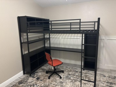 Arrived in two boxes intact; there weren’t any reviews so I wasn’t too sure about this, but the bed is as described and the parts are solid and it goes together well. That said, it is a fairly complicated build (40 parts) and it took me probably 4-6 hours for each bed (I built 2). I am happy with my purchase and these will work well for my kids.