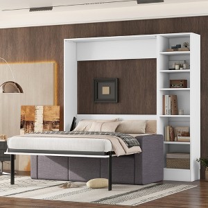 - Space-Saving Design with Integrated Storage Featuring built-in floor-level storage cubbies and a floor-standing shelving unit, this Murphy bed optimizes limited space while offering convenient storage solutions to keep your room neat and organized.