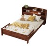 Twin/Full Size Platform Bed Frame with Bookcase Headboard, LED Motion Sensor Light & Guardrails - ModernLuxe