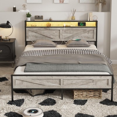 Platform Bed Frame with Headboard, Led Light & Charging Station