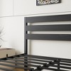 - Industrial-Rustic Aesthetic with Timeless Appeal The bed showcases a striking blend of a retro black wooden headboard and footboard made from three solid panels, paired with frosted metal slats, creating a bold industrial and rustic look that adds character and modern charm to any bedroom.
