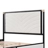 - Chic Champagne Silver & Black Frame with Plush Boucle Headboard The platform bed combines a sleek Champagne Silver and Black frame with a soft, white boucle fabric headboard, creating a warm and inviting aesthetic that elevates any bedroom into a modern yet cozy retreat.