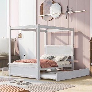 Full Size Wood Canopy Bed with Trundle