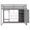 Full Size Wood Loft Bed with Wardrobe, Shelves and Cabinet
