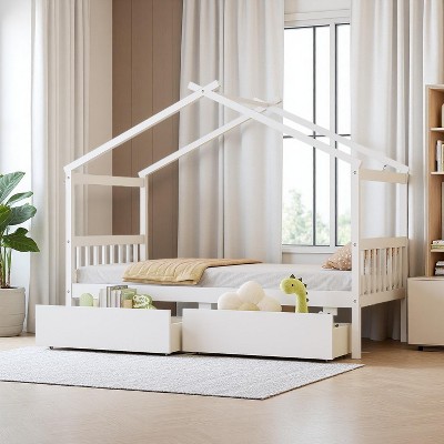 - Spacious Storage: The wood house platform bed with two drawers offer storage space for clothes and toys, maximize space and help to develop your child's habit of storage. It's a perfect space-saving solution to you.