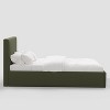 - Upholstered low platform bed, designed for use without a box spring