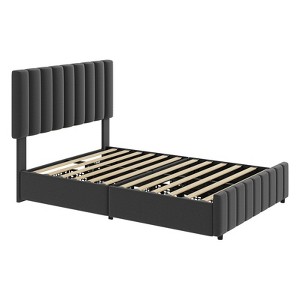 Upgrade your bedroom with this full upholstered bed frame featuring 4 spacious storage drawers and an adjustable headboard. The wooden slat support eliminates the need for a box spring, while the durable linen fabric adds comfort and style. Maximize storage and enjoy a quiet, sturdy sleep with this sleek grey platform bed.Specification: