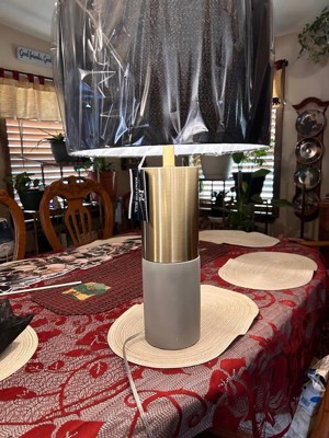 Elevate your space with the Fulton Metal & Concrete Table Lamp from INK+IVY—a striking blend of modern design and industrial charm. Crafted with a solid metal and concrete base, this lamp offers both stability and style, while the sleek gold metal accents add a touch of sophistication. Topped with a black drum shade and secured by a gold metal finial, it delivers both upward and downward illumination, creating the perfect ambiance in any space. Whether placed in a living room, bedroom, or office, this lamp is a versatile statement piece that enhances any décor. Designed for both function and aesthetics, the 72” clear cord seamlessly blends into your space, and the easy on/off switch on the socket ensures effortless operation. Plus, it comes with a spiral 13W CFL bulb, providing instant warm illumination.