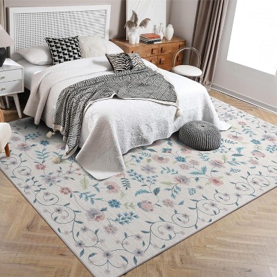 Fulvari Area Rug Retro Boho Pattern Washable Ultra-Thin Non Slip Living Room Dining Bedroom & Office Dark Green,Beige,9'x12'