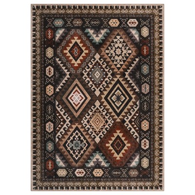Fulvari Area Rug Retro Boho Pattern Washable Ultra-Thin Non Slip Living Room Dining Bedroom & Office Dark Green,blue,5'x7'
